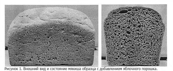 В случае кексов яблочный порошок добавляли во взбитую с яйцом жировую фазу (в количестве 11% к массе готового изделия), а в случае хлеба - в муку (в количестве 3% к массе муки). Тесто кексов получалось пышным, эластичным, хорошо разделывалось, тесто хлеба хорошо увеличивалось в объёме и набирало кислотность, хорошо разделывалось, было пластичным, не залипало, за время расстойки хорошо увеличивалось в объёме.